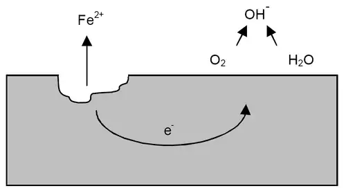 Este tipo de corrosión ocurre generalmente en superficies expuestas al oxígeno diatómico disuelto en agua o al aire; se ve favorecido por altas temperaturas y presión elevada (ejemplo: calderas de vapor). La corrosión en las máquinas térmicas (calderas de vapor) representa una constante pérdida de rendimiento y vida útil de la instalación.