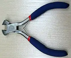 El cortaalambres frontal o tenacilla (en inglés end cutting wire Knipper,)[1] es una herramienta que corta por presión y de forma limpia alambres, cables metálicos o cables eléctricos. Tiene un diseño similar al cortaalambres lateral, del que se diferencia en la función de corte que es frontal en lugar de ser lateral, así como por un cabezal más corto y por lo tanto una palanca mayor . La diferencia esencial radica en el hecho de que los bordes de corte no se encuentran paralelos con los mangos por donde se agarran, sino formando un ángulo de 90 grados con los mismos. Esto permite cortar clavos o tornillos que sobresalen de una superficie, en condiciones de trabajo estrictas.[2]