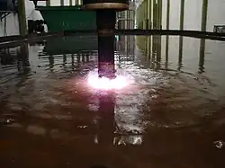 Gracias a la conductividad eléctrica es transferido hasta la zona de corte, mientras que el arco generado inicialmente, denominado arco piloto, se apaga automáticamente.
