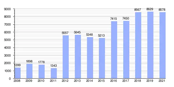 | Gráfica de evolución demográfica de Cortegana[4] entre 1842 y 2021 |