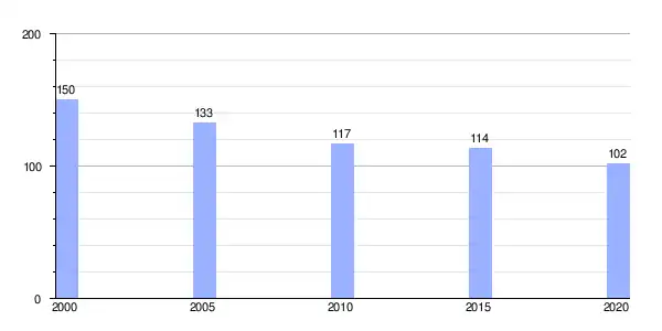 | Gráfica de evolución demográfica de Cortes (aldea) entre 2000 y 2020 |