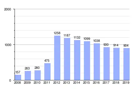 | Gráfica de evolución de la deuda viva del Ayuntamiento de Cortes de Baza entre 2008 y 2019 |