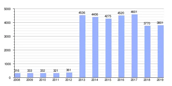 | Gráfica de evolución demográfica de Cortes de la Frontera[3] entre 1842 y 2021 |