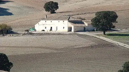 Sus edificios (más o menos grandes, con muchas o pocas dependencias, dependiendo del tipo de explotación) se encuentran aislados en el campo, muy alejados de las localidades donde se concentra la población (en esa zona, grandes pueblos o incluso agrociudades). El gran tamaño de las propiedades agrícolas las sitúa en el ámbito del latifundio, y explica buena parte de las características socioeconómicas que se desarrollaron durante los siglos XIX y XX (polarización social entre los jornaleros sin tierras y los propietarios absentistas -señoritismo, caciquismo-, atraso productivo, emigración, etc.).
