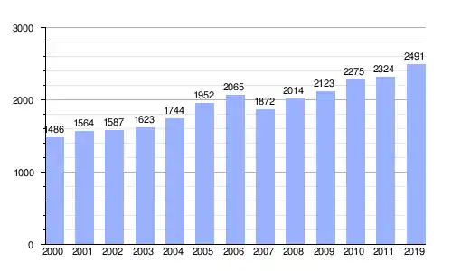 | Gráfica de evolución demográfica de Cortijos de Marín entre 2000 y 2019 |