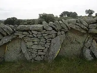 Los muros son un claro ejemplo de una obra singular y artesanal. Se realizan con mampuestos colocados en hiladas y generalmente ajustados unos a otros sin sujeción. Está formada por piedras de granito y/o de pizarra sin labrar, de un tamaño que permita su colocación con la mano.