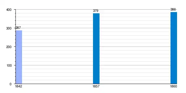 | Gráfica de evolución demográfica de Corumbela[2] entre 1842 y 1860 |