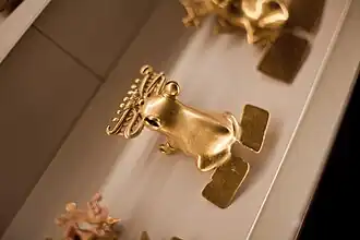 A partir de 800 d. C. y hasta la llegada de los españoles en el siglo XVI, se presentó un incremento en el tamaño y complejidad del diseño interno de las aldeas, y las diferencias regionales se acentuaron. La presencia de numerosos cementerios, simples y complejos, obras de infraestructura masivas, diversidad de bienes domésticos y suntuarios, desarrollo de orfebrería, intercambio regional y conflictos entre cacicazgos por territorios y recursos son elementos característicos de esta época. La jerarquización social incluye individuos principales como el cacique y el chamán, y el pueblo común formado por artesanos y agricultores. El oro substituyó al jade como símbolo de rango, en especial en las regiones Central y Diquís.[46]​ En la región del Valle del Díquis, se fabrican las esferas de piedra distintivas de la región, en el delta de los ríos Térraba y Sierpe, las cuales se postula que fueron utilizadas como símbolo de rango y marcadores territoriales. Otras obras de piedra incluyen figuras de bulto de formas humanas y animales, metates en forma de jaguar y estatuas antropomorfas.[47]​ Las zonas central, sur y atlántica del país tuvieron influencia sudamericana, debido a la presencia de grupos que hablan lenguas chibchas. La actual provincia de Guanacaste se convirtió en la frontera sur de Mesoamérica con la llegada de los chorotegas para el periodo comprendido entre los años 900 al 1000 d. C.[48]​ Los asentamientos humanos en la Costa Rica prehispánica cumplieron una función de puente cultural entre el Sur y el Norte del continente, y la orfebrería y la artesanía policromada en barro, tuvieron un amplio desarrollo y bellísimos resultados.[48]