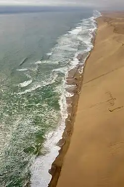 La característica básica de esta costa reside en el hecho de que el desierto de Namibia llega hasta el océano Atlántico Sur.