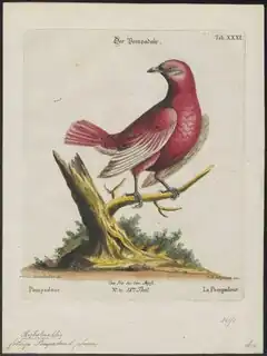 - ↑ a b Linnaeus, C. (1766). Systema naturæ: per regna tria natura, secundum classes, ordines, genera, species, cum characteribus, differentiis, synonymis, locis (en latín). Tomo 1 Parte 1. Ed. 12, reformata. Holmiæ (Estocolmo): Impensis Direct Laurentii Salvii. p. 42946494. Disponible en Biodiversitas Heritage Library. doi:10.5962/bhl.title.68927. Ampelis pompadora p. 298.