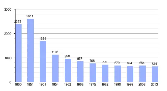 Los datos entre 1800 y 2013 son el resultado de sumar los parciales de las cuatro comunas que forman la nueva comuna de Cour-Maugis-sur-Huisne, cuyos datos se han cogido de 1800 a 1999, para las comunas de Boissy-Maugis,[3] Courcerault,[4] Maison-Maugis[5] y Saint-Maurice-sur-Huisne[6] de la página francesa EHESS/Cassini. Los demás datos se han cogido de la página del INSEE.[7]