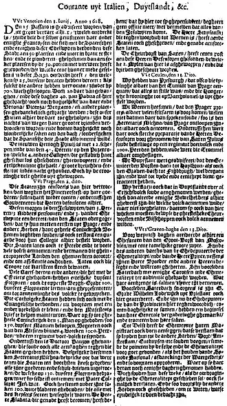 Courante uyt Italien, Duytslandt, &c. (en español, Eventos actuales de Italia, Alemania, etc.) fue el primer periódico en idioma neerlandés. Fue publicado en junio de 1618 en Ámsterdam. Fue un periódico semanal de carácter regular, y el primero en gran formato. Anteriormente, los periódicos noticiosos habían sido panfletos de menor tamaño.