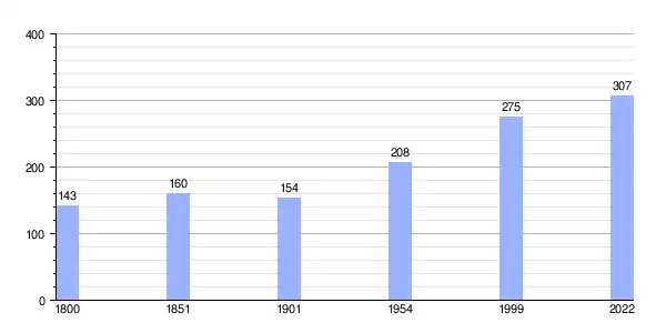 | Gráfica de evolución demográfica de Courcelles-sur-Viosne entre 1800 y 2022 |