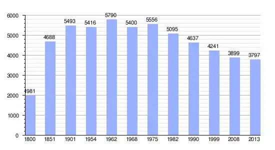 Los datos demográficos contemplados en este gráfico de la comuna de Cours-la-Ville[3] se han cogido de 1800 a 1999 de la página francesa EHESS/Cassini, y los demás datos de la página del INSEE.[4]