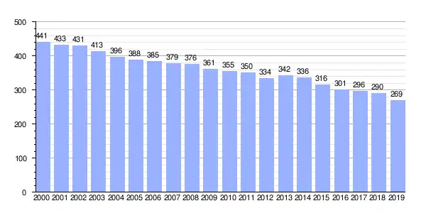 | Gráfica de evolución demográfica de Couso (parroquia) entre 2000 y 2019 |