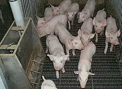 Todas estas formas de explotación porcina se utilizan hoy en día, aunque las granjas intensivas son, con diferencia, las más populares, debido a su potencial para criar una gran cantidad de cerdos de forma muy rentable.[4] En los países desarrollados, las granjas comerciales albergan miles de cerdos en edificios de clima controlado.[5] Los cerdos se crían en gran cantidad, con más de mil millones de cerdos sacrificados cada año en todo el mundo. La mayoría de los cerdos se destinan a la alimentación humana, pero también suministran piel, grasa y otros materiales para prendas de vestir, ingredientes para alimentos procesados,[6] cosméticos[7] y usos médicos.[8]
