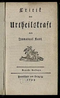 ![]() Carátula de una segunda edición de "Kritik der Urteilskraft", KU (Crítica del Juicio) | |||||