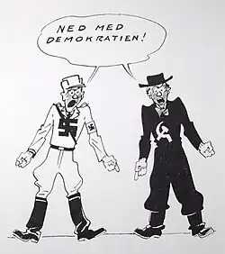 En El camino de servidumbre, Friedrich Hayek argumentó que una distribución más equitativa de la riqueza mediante la nacionalización de los medios de producción no puede lograrse sin una pérdida de derechos políticos, económicos y humanos. Sostuvo que para lograr el control sobre los medios de producción y distribución de la riqueza es necesario que esos socialistas adquieran importantes poderes de coerción. Hayek argumentó que el camino hacia el socialismo lleva a la sociedad al totalitarismo y sostuvo que el fascismo y el nazismo fueron el resultado inevitable de las tendencias socialistas en Italia y Alemania durante el período anterior. Así, sostuvo Hayek, moverse hacia la izquierda del capitalismo al socialismo es en realidad moverse hacia la derecha, del capitalismo al fascismo.[36] Estas ideas se resumen en la "teoría de la herradura". Un argumento similar ha sido presentado por críticos como Dinesh D'Souza, quien sostiene que debido a que el nombre alemán completo del Partido Nazi alemán era Nationalsozialistische Deutsche Arbeiterpartei, y debido a que "Nationalsozialistische" se traduce como "nacionalsocialismo", el fascismo es en realidad un tipo de socialismo, y tantos socialistas son nazis.[37]