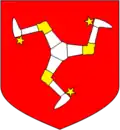 Tres piernas dobladas reunidas en corazón por la cadera. Las piernas pueden estar desnudas (armas de Sicilia), vestidas o armadas.