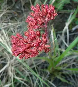 Es una hierba suculenta perenne o bianual, que alcanza un tamaño de 90 cm de altura; con raíz tuberosa producción de uno a muchos tallos, rodeado en la base por una roseta de hojas carnosas densas que generalmente desaparecen en la antesis; el tallo erecto, simple, carnoso.