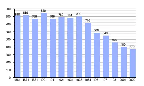 | Gráfica de evolución demográfica de Cravanzana entre 1861 y 2022 |