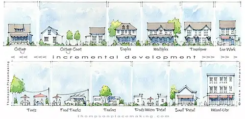 - ↑ a b Jacobs, Jane (1961). The death and life of great American cities. New York: Random House. pp. 168. ISBN 978-0394421599.