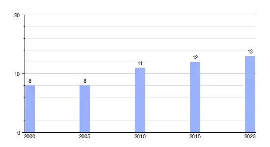 | Gráfica de evolución demográfica de Crecedur entre 2000 y 2023 |
