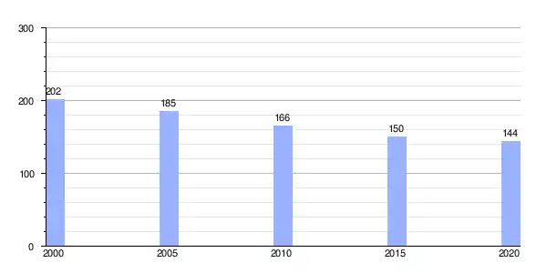 | Gráfica de evolución demográfica de Crecente entre 2000 y 2020 |