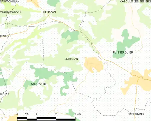 Creissan es una población y comuna francesa, situada en la región de Occitania, departamento de Hérault, en el distrito de Béziers y cantón de Saint-Pons-de-Thomières.
