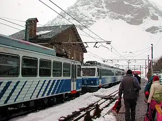 El recorrido es de 12,5 kilómetros sobre vía de ancho métrico (1000 mm) y supera un desnivel de 1059 metros. Los primeros 5,5 kilómetros funcionan mediante el sistema de raíles tradicional, y el resto como un tren cremallera central de sistema Abt, que supera una rampa máxima del 15%.