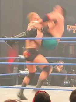 - Mercy Kill(Circuito independiente) / Red Alert (TNA) (Swinging side slam spun out into a reverse STO)