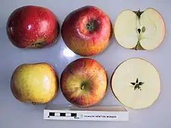 ![]() La variedad de manzana 'Crimson Newton' con secciones cruzadas. | ||