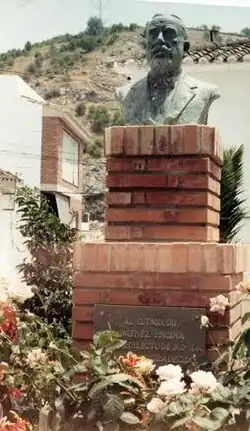 Cristóbal Jiménez-Encina, busto en Monda (Málaga)Monda, que ya de antiguo conocías el bronco honor de los guerreros hechos y que, en la paz de tus tranquilos días, mirándote hacia dentro, revivías epopeyas de ejércitos deshechos, hoy, finalmente—y hasta hoy, no—has sabido de la gloria que dura, más allá de la muerte y del olvido porque esto de virtud, como el latido de una fontana de agua en la llanura. Monda, en lo antiguo heroica y hoy materna, aunque es humilde, para la medida de tu gloria de antaño, la moderna; porque aquélla era muerte y esta es vida. Besa en la frente al que nació en tu seno, honra su mano que el dolor mitiga y, por tu gesto de hoy. Dios te bendiga porque no cabe más en lo terreno; santo como el terrón que da una espiga es el pueblo en que nace un hombre bueno.