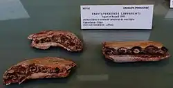 Espécimen holotipo (MNHN GDF 366), compuesto por fósiles de mandíbulas, Museo Nacional de Historia Natural, París