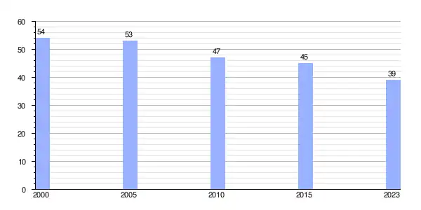 | Gráfica de evolución demográfica de Cristosende (lugar) entre 2000 y 2023 |