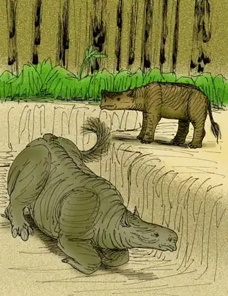 Brachydiastematherium transylvanicum (abajo) y Crivadiatherium mackennai (arriba). | ||