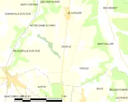Cropus es una población y comuna francesa, en la región de Alta Normandía, departamento de Sena Marítimo, en el distrito de Dieppe y cantón de Bellencombre.