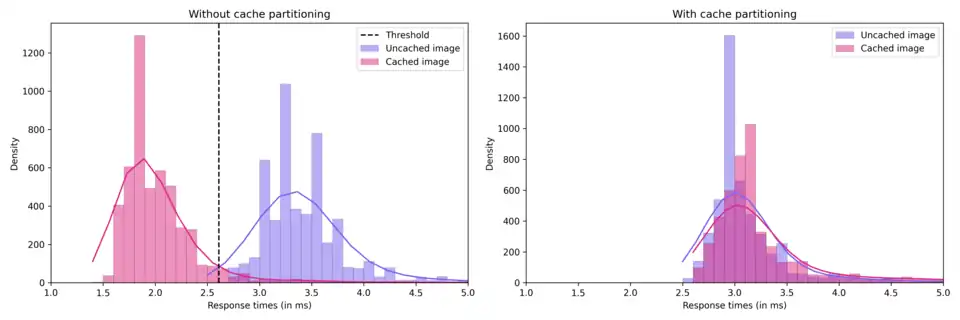 Uno de los primeros métodos para realizar filtraciones entre sitios fue el uso de la caché HTTP, un enfoque que se basaba en la consulta de la caché del navegador en busca de recursos únicos que el sitio web de la víctima pudiera haber cargado. Midiendo el tiempo que tardaba una solicitud de origen cruzado en resolver un sitio web atacante, se podía determinar si el recurso estaba almacenado en caché y, en caso afirmativo, el estado de la aplicación víctima.[69][72] Desde octubre de 2020, la mayoría de los navegadores han implementado la partición de caché HTTP, lo que reduce drásticamente la eficacia de este método.[73] La partición de caché HTTP funciona aplicando múltiples claves a cada solicitud almacenada en caché en función del sitio web que solicitó el recurso. Esto significa que si un sitio web carga y almacena en caché un recurso, la solicitud almacenada en caché está vinculada a una clave única generada a partir de la URL del recurso y la del sitio web solicitante. Si otro sitio web intenta acceder al mismo recurso, la solicitud se tratará como un fallo de caché a menos que ese sitio web haya almacenado previamente en caché una solicitud idéntica. Esto impide que un sitio web atacante deduzca si un recurso ha sido almacenado en caché por un sitio web víctima.[74][75][76]