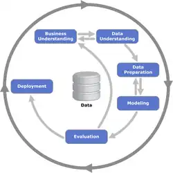 Las flechas en el diagrama indican las dependencias más importantes y frecuentes entre fases. El círculo exterior en el diagrama simboliza la naturaleza cíclica de la minería de datos en sí. Un proceso de minería de datos continúa después del despliegue de una solución. Las lecciones aprendidas durante el proceso pueden provocar nuevas preguntas de negocio, a menudo más centradas y posteriores procesos de minería de datos se beneficiarán de la experiencia de los anteriores.