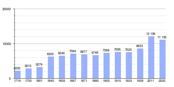 | Gráfica de evolución de Krosno Odrzańskie entre 1719 y 2020 |