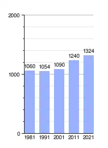 Gráfica de evolución demográfica de Cruilles, Monells y San Sadurní[4]​ entre 1981 y 2021