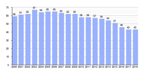 | Gráfica de evolución demográfica de Cruceiro entre 2000 y 2018 |