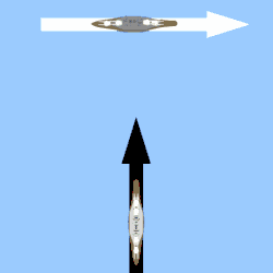 - el resto de la escuadra atacada no puede responder al fuego enemigo, ya que se halla en el eje del buque que la precede, y tampoco puede utilizar las bocas de fuego que se encuentren en sus torres artilleras traseras.