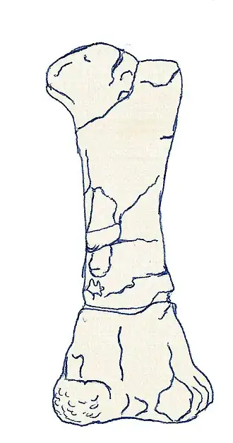 El holotipo , CAMSM J.46882,[3] fue descubierto en el hoyo de ladrillo Great Gransden , en los estratos de la Formación Ampthill Clay, llamada también Arcilla de Oxford, data del Oxfordiense superior . El fémur derecho mide aproximadamente 33 centímetros de largo y tiene un eje grueso. Pertenecía a un individuo adulto o al menos subadulto, lo que significa que la especie era bastante pequeña.
