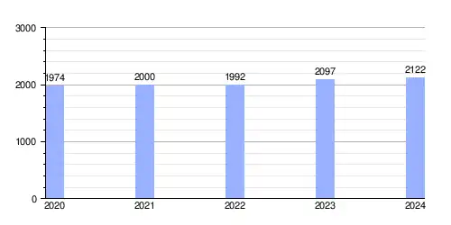 Hasta 2024 la población era de 2122 habitantes,[2] con una densidad de población de 43,10 hab/km².[2]