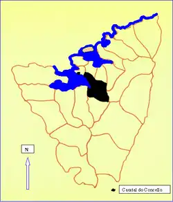 - ↑ Miralbes Bedera, Rosario; de Torres Luna, María Pilar; Rodríguez Martínez-Conde, Rafael (1979). «Ortigueira». Mapa de límites de las parroquias de Galicia. Santiago de Compostela: Imprenta Paredes. p. 19. ISBN 8460014142.