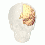 ![]() Vista medial de un cerebro humano partido por la mitad. | ||