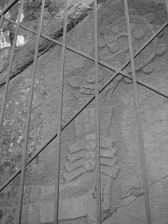 - Ce Cipactli (Uno Cocodrilo): Pertenece al primer día del calendario solar mesoamericano. La fecha está asociada a Chantico o Cuauhxolotl, deidad patrona de la pesca y el fuego doméstico, el relieve en roca bien puede aludir al periodo en el que se debía rendir culto sagrado a esta deidad.[8]