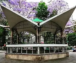 - Kiosco central. Fue inaugurado el 20 de noviembre de 1965, se cree que es obra del arquitecto Félix Candela (aunque se siguen realizando investigaciones al respecto), quien realizó diversas obras en el país, entre ellas el Palacio de los Deportes y la estación Candelaria del Metro.