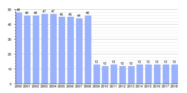 | Gráfica de evolución demográfica de O Covelo entre 2000 y 2018 |